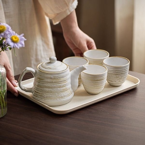 🔸 Thiết kế tối giản và tiện dụng: Bộ sản phẩm gồm 1 ấm và 5 cốc, lý tưởng cho gia đình nhỏ hoặc những buổi thưởng trà ấm cúng. Kiểu dáng gọn gàng, mềm mại, dễ phối hợp với các phong cách nội thất hiện đại hoặc truyền thống.