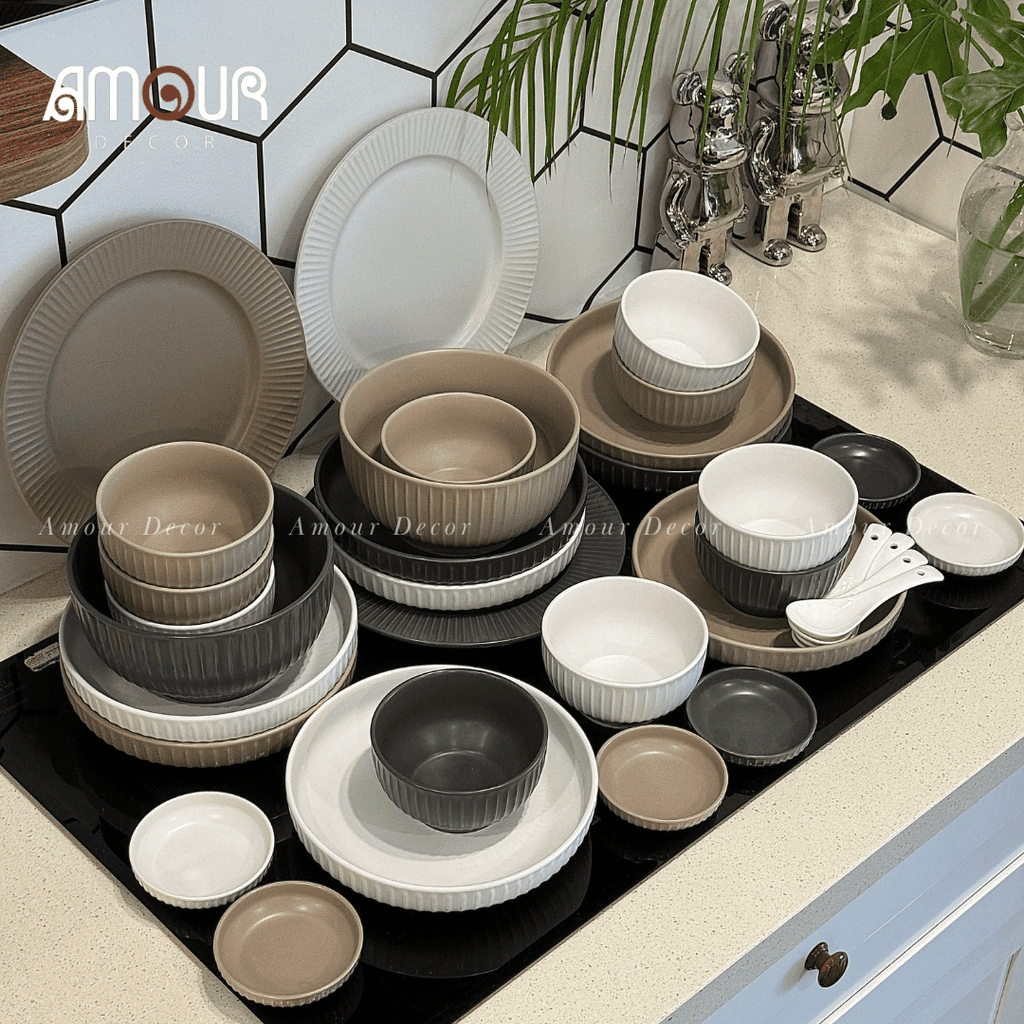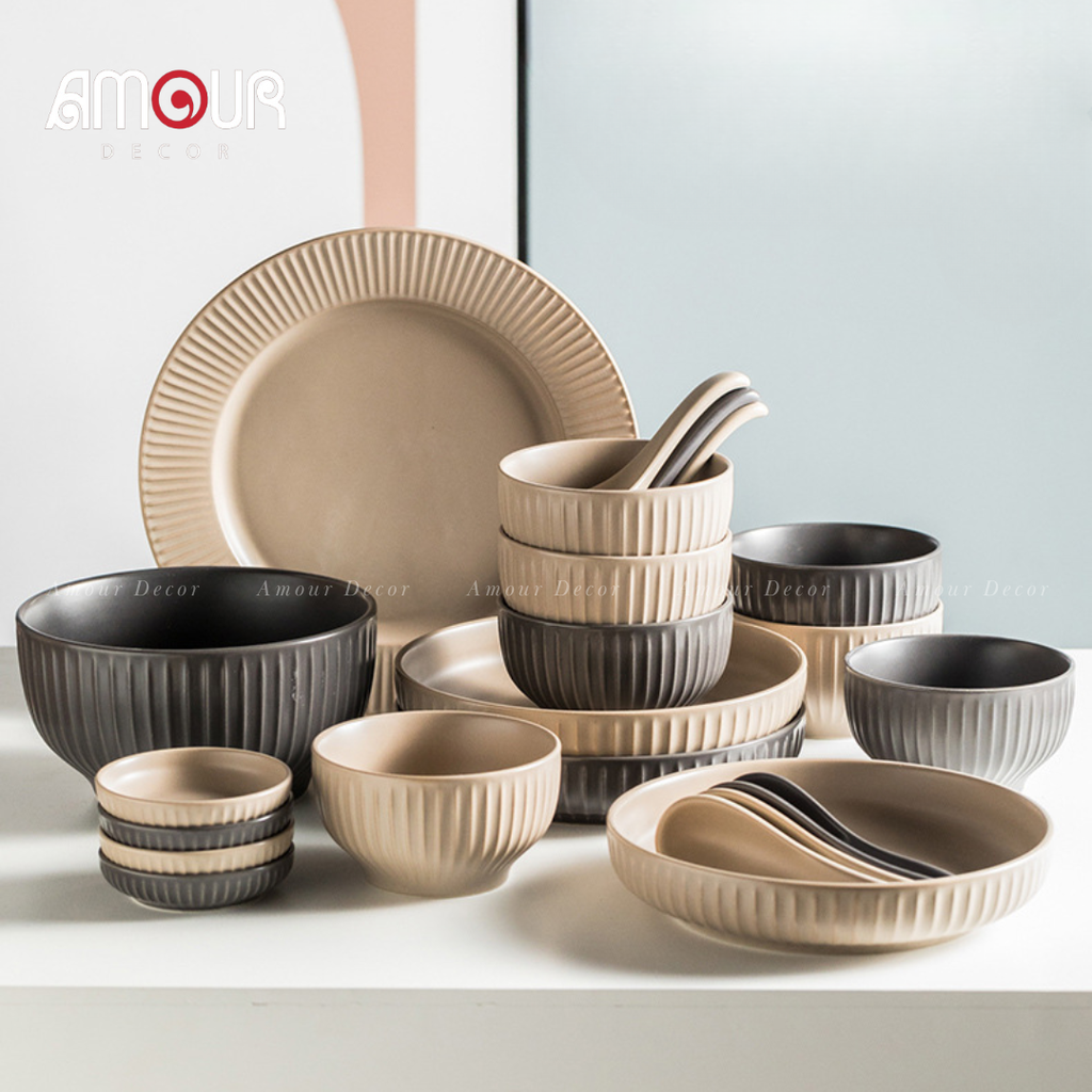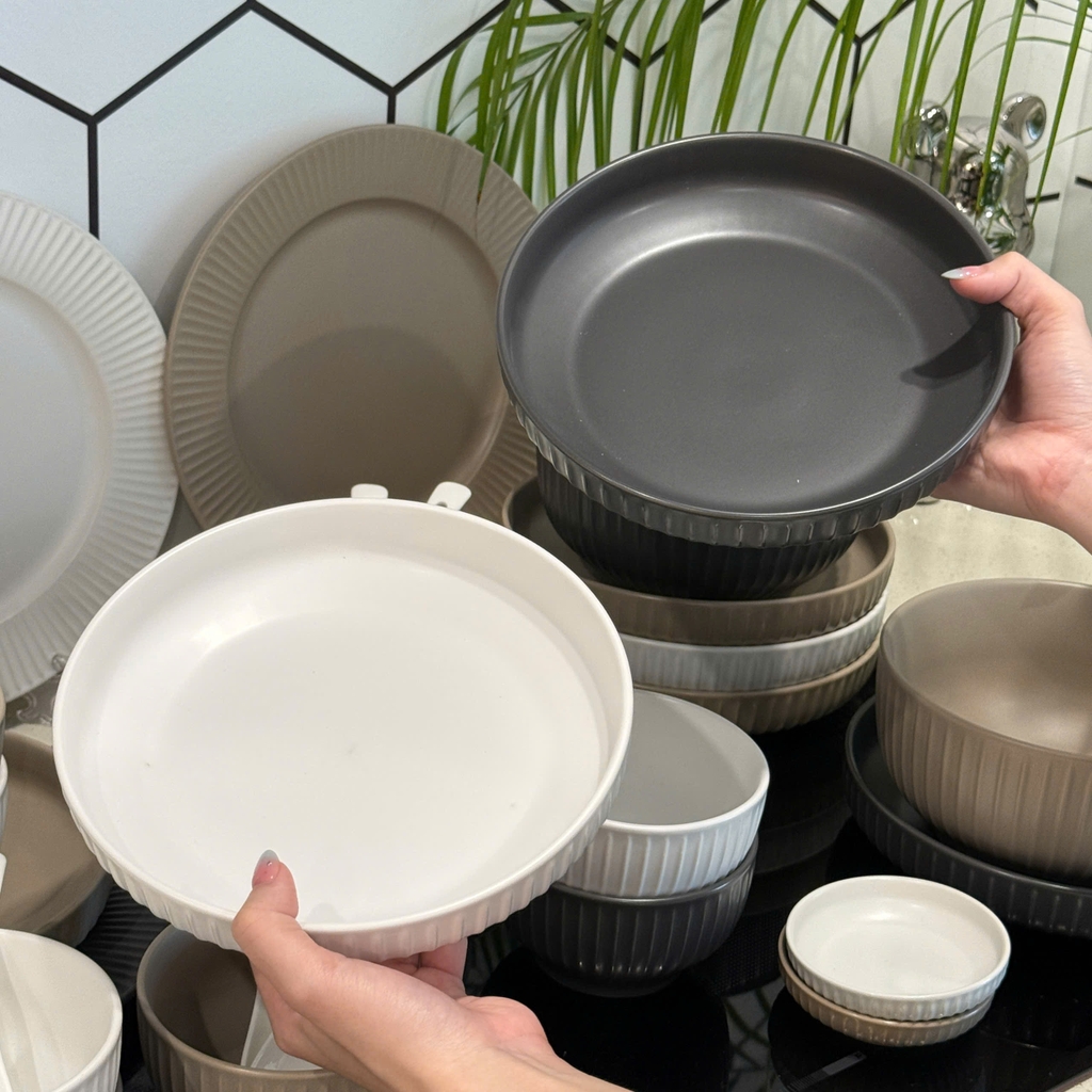 Sự đa dạng về kích thước: Bộ sản phẩm gồm các loại bát, đĩa lớn, nhỏ phù hợp cho từng nhu cầu sử dụng như ăn cơm, ăn súp hay đựng món ăn phụ, tráng miệng.