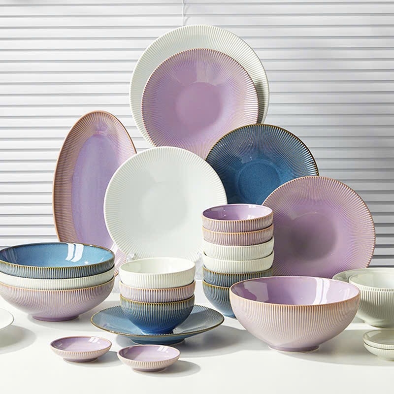 Bộ bát đĩa thượng hạng phong cách Bắc Âu - vân sọc nhỏ màu multi - GT0006