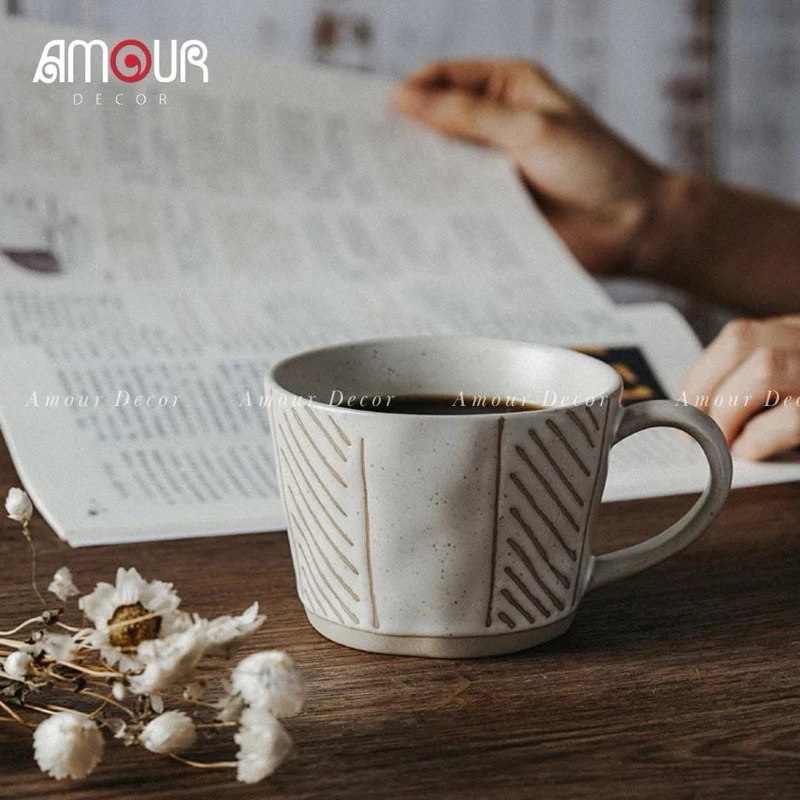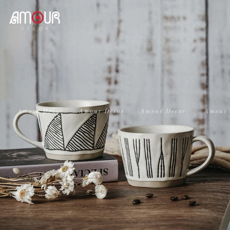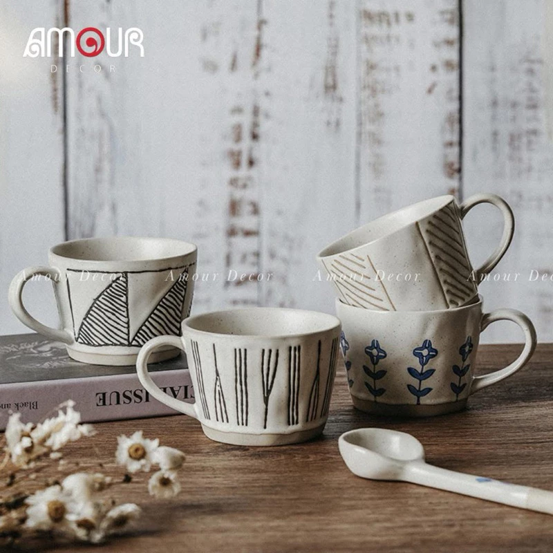 CỐC SỨ THỦ CÔNG PHONG CÁCH NHẬT BẢN – 300ML | MEN MỜ CAO CẤP | 4 HOẠ TIẾT TỐI GIẢN