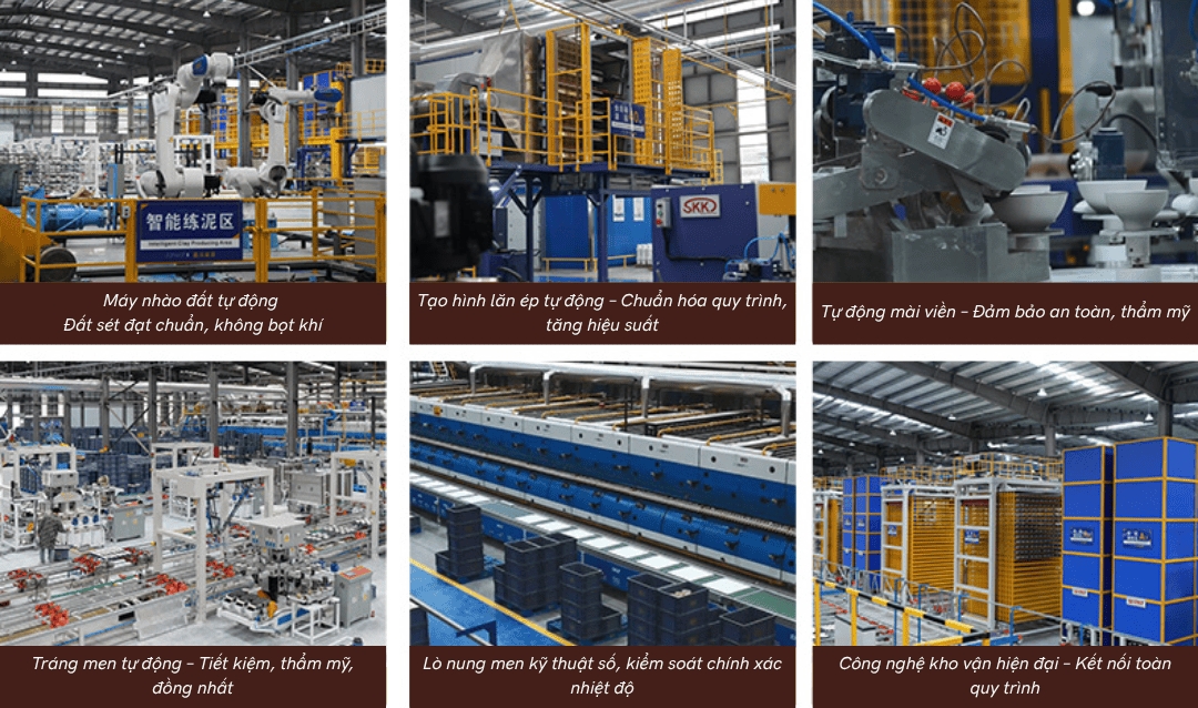 Amour Decor tự hào hợp tác với các nhà máy đạt tiêu chuẩn quốc tế, sở hữu hệ thống sản xuất tự động hóa toàn diện và kiểm định chất lượng khắt khe ở mọi khâu – từ tuyển chọn nguyên liệu đến tạo hình, tráng men và nung sản phẩm.
